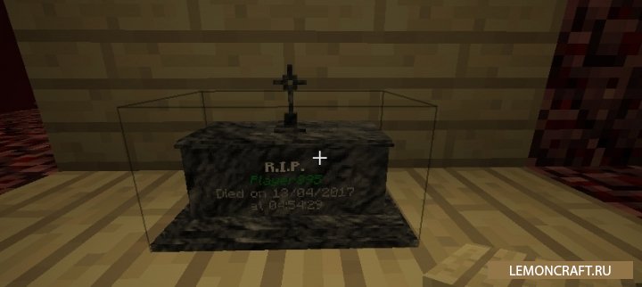 Мод Corail Tombstone позволяет установить надгробие, памятник на месте вашей смерти. В этих могилках будут храниться все ваши вещи и предметы, которые вы носили с собой до смерти. Надгробия можно запаролить специальным ключом, что бы только вы смогли забрать ваши вещи.